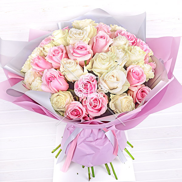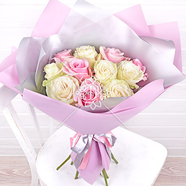 Изысканный аромат – букет из розовых и белых роз