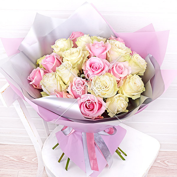 «Изысканный аромат» - букет из нежных розовых и бело-кремовых роз, который не оставит равнодушным женское сердце. Прелесть обворожительных розовых лепестков, их чарующий аромат и несравненная красота создают поистине классическую и  стильную цветочную композицию.