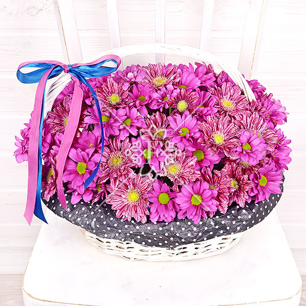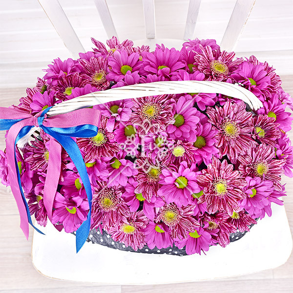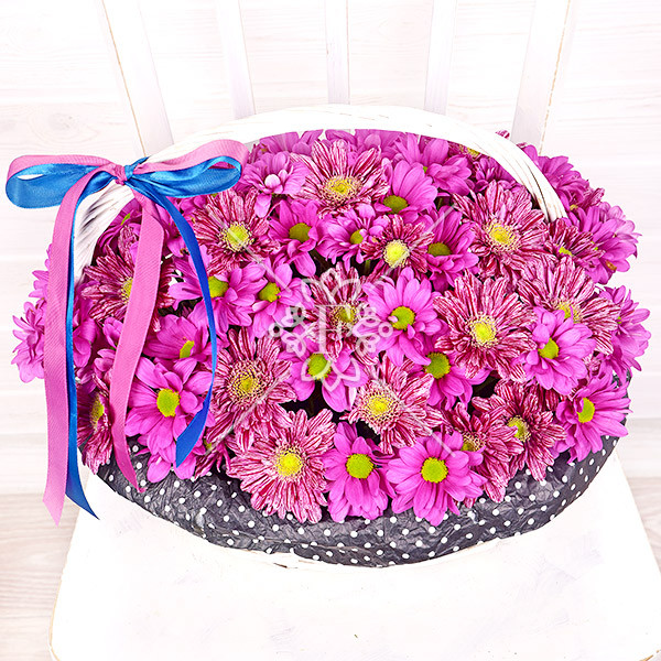 Хризантема кустовая фиолетовая – 9 шт., оазис, корзинка.