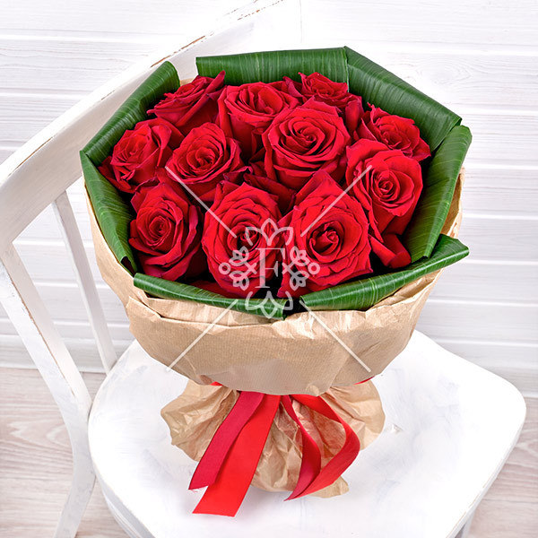 Взгляните на букет из красных роз в обрамлении зелени аспидистры – он выглядит великолепно, достойно и совершенно! Эта цветочная композиция, безусловно, достойна настоящей королевы!